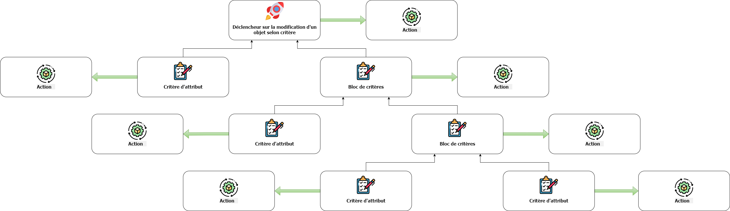 Déclenchez des actions complexes (modifications, suppressions, créations…) en fonction de critères dynamiques sans écrire une seule ligne de code.